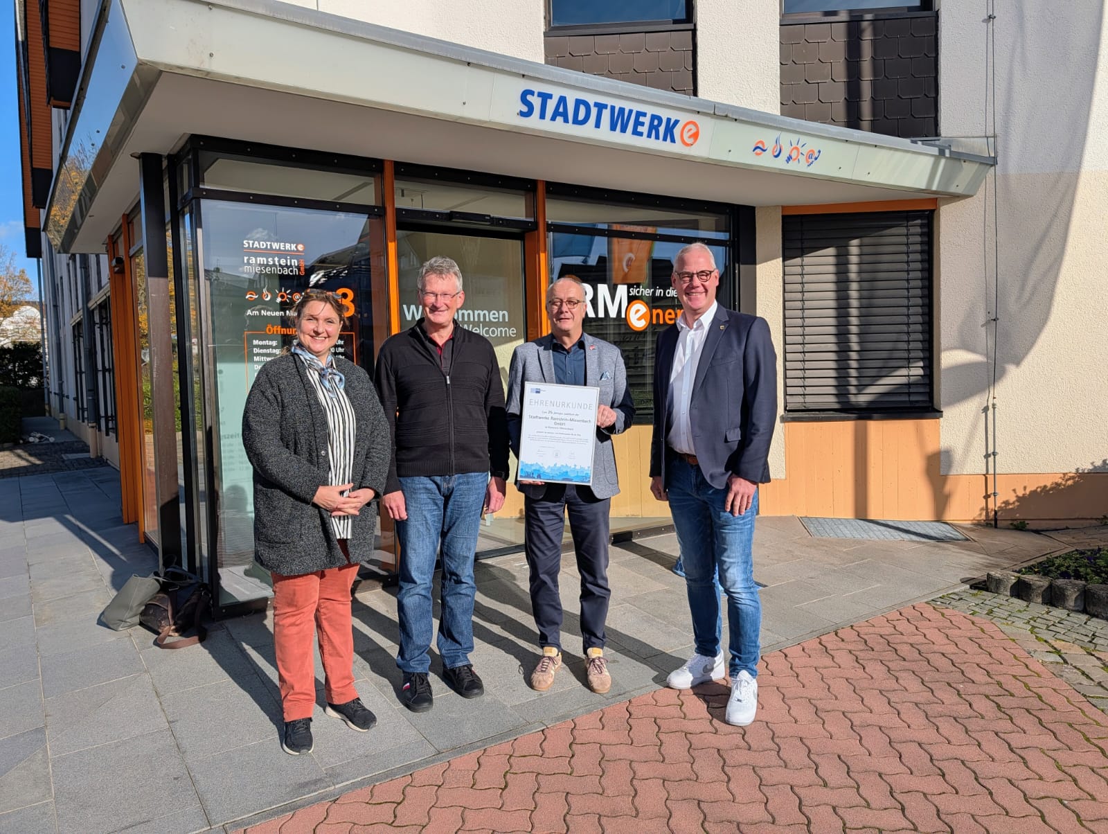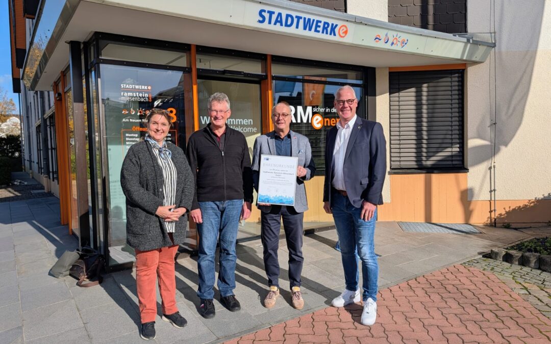 Die Industrie- und Handelskammer der Pfalz hat den Stadtwerken eine Jubiläumsurkunde für 25 Jahre Mitgliedschaft überreicht. Vor 25 Jahren hat sich die Stadt entschieden die Stadtwerke als GmbH neu aufzustellen. Die IHK Regionalleiterin Veronika Pommer zeigte sich beeindruckt von der Entwicklung der Stadtwerke Ramstein-Miesenbach.